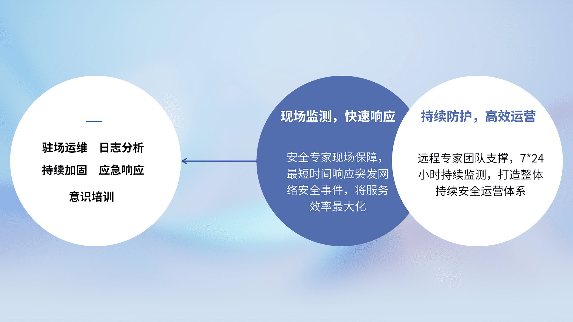 7X24小时持续监测安全事件,保持安全策略有效性,降低资产脆弱性风险,,,,精准拦截黑客攻击,,,,减少被黑客利用的机会,,,第一时间遏制,,,降低损失。。。